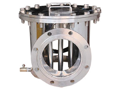 流體式過濾器主要用于清除液體及漿料中的鐵磁性雜質(zhì),廣泛適用于食品、塑料、化工、橡膠、制藥、陶瓷、環(huán)保、顏料、染料等行業(yè)。 工作原理:流體式過濾器是將采用由優(yōu)質(zhì)無縫不銹鋼管和稀土合金釹鐵硼,并采用特殊的制作方法制作而成的(磁棒),安裝在由優(yōu)質(zhì)無縫不銹鋼管構(gòu)成的通體中,使用法蘭將其安裝在生產(chǎn)線輸送管道中或出料口處,當含鐵的液體或漿料通過時,受到磁力棒的吸引,將含鐵的物質(zhì)牢固的吸附在管壁上,以保證設(shè)備的完好和產(chǎn)品的安全。產(chǎn)品特點:本品采用稀土合金釹鐵硼作為磁源,使用壽命長,無能耗、無污染、結(jié)構(gòu)簡單、使用方便、磁系全格柵式排列,使得強磁區(qū)域得以充分利用,多層設(shè)計,層層過濾,除鐵更徹底,效果更顯著。